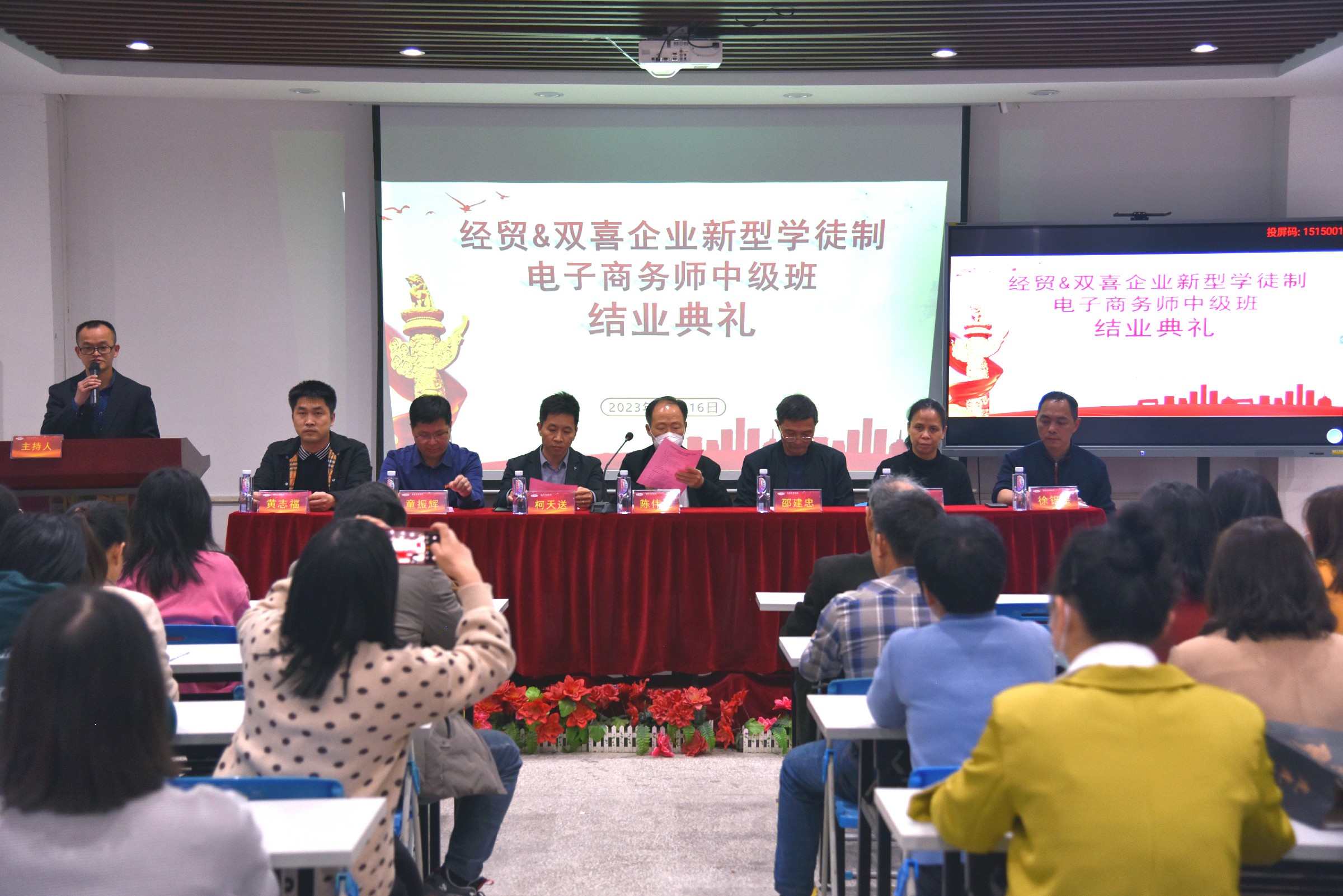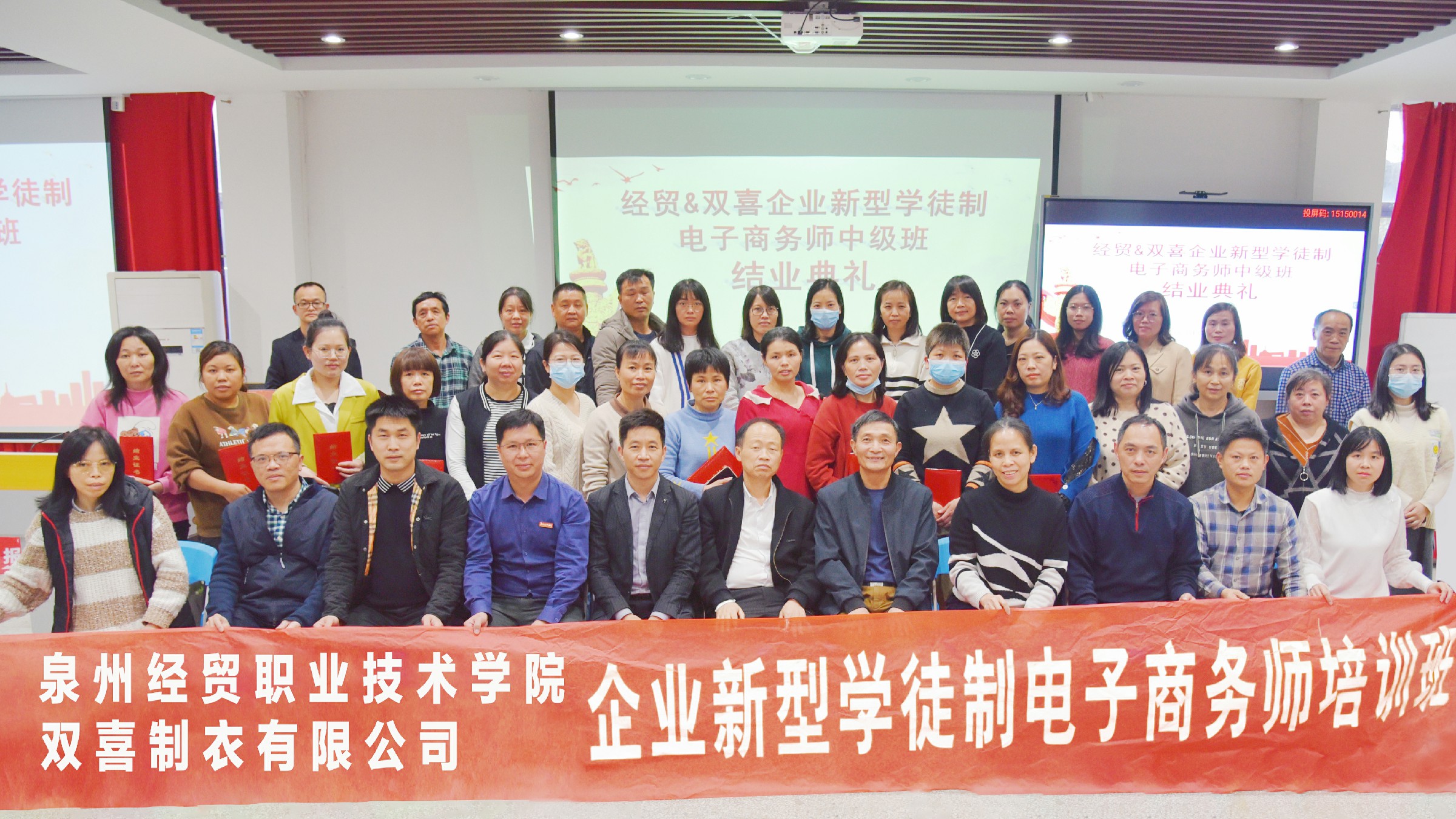 3月16日下午,经贸&bg真人试玩企业新型学徒制电子商务师中级班结业典礼在bg真人试玩学校多功能厅隆重举行。泉州台商投资区民生保障局陈伟昆主任、泉州台商投资区民生保障局劳动保障科干事黄志福先生、泉州经贸学院继续教育部邵建忠主任、泉州经贸学院继续教育部吴锦智副主任、泉州经贸学院轻工系综合办公室童振辉主任、泉州经贸学院继续教育部干事、学徒制班主任徐银星老师、福建bg真人试玩集团副总经理柯天送先生等有关领导出席了本次结业典礼。