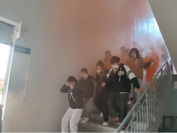 下午两点三十分,随着警报声响起,演练正式开始。各班任课教师迅速组织学生弯腰低身,沿预定路线快速撤离到楼道转角处,安全岗教师引导学生分流,避免拥挤;