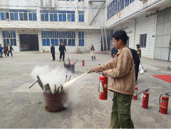 演练还模拟了灭火器使用场景,安全员现场演示了灭火器使用方法、讲解灭火器种类,学生代表参与实操,提升消防应急能力。