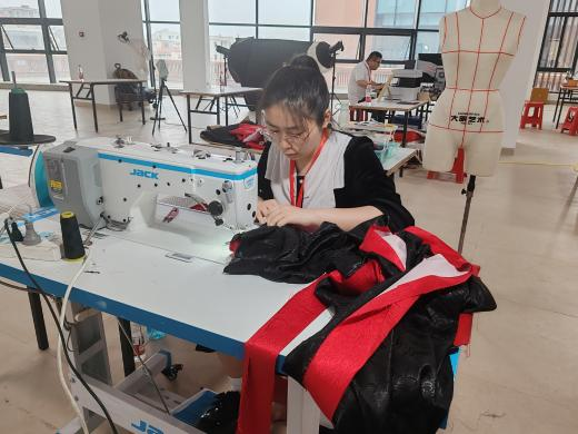 庄铮湄老师在比赛中沉着冷静,将多年积累的专业知识与实践经验完美融合。在服装设计上,她以秦汉时期的“双绕曲裾”为原型,加入一些现代元素以及制作技巧,设计出参赛作品;在服装裁剪过程中,她手法娴熟,精准把控每一处剪裁细节,展现出扎实的专业功底;服装工艺制作过程里,她对品质的极致追求更是令人赞叹,每一针每一线都凝聚着匠心。最终,庄铮湄老师凭借优异表现,从众多选手中脱颖而出,斩获区级技能大师殊荣!
