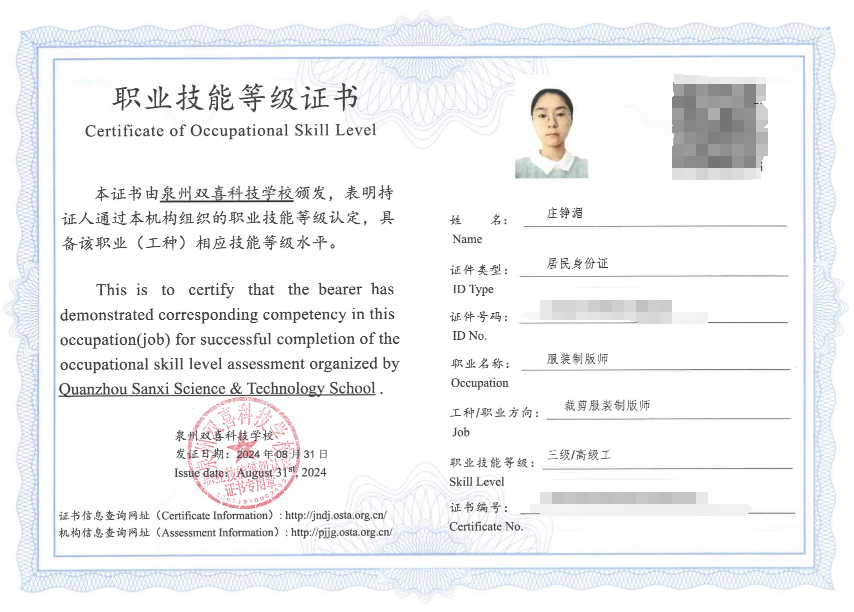 除了此次荣获区级技能大师称号,庄铮湄老师在职业生涯中还收获了诸多荣誉与证书。她先后获得 “洛阳镇优秀教师”“洛阳镇先进教育工作者”等荣誉称号;拥有服装制版考评员、高级服装制版师、服装制作工等专业技能证书。这些荣誉和证书,是对她专业能力和教学成果的高度肯定,更是她多年来辛勤付出和不懈追求的见证。