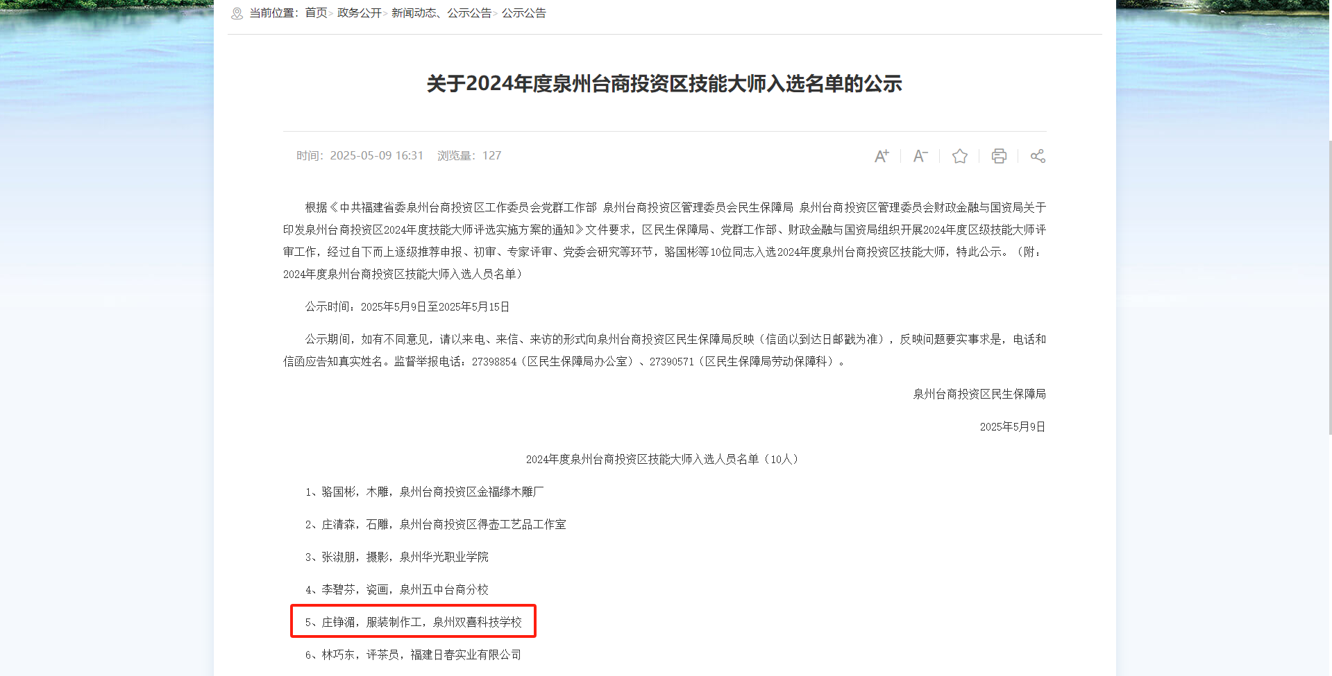 在技能人才的璀璨星空中,一颗耀眼的新星正绽放着夺目光芒!今年 4 月,在泉州台商投资区民生保障局组织的区级技能大师及技能大师工作室评选综合类比赛(服装类)的激烈角逐中,我校庄铮湄老师凭借精湛的专业技能、丰富的教学经验和创新的设计理念脱颖而出,成功当选区级技能大师!这不仅是庄铮湄老师个人职业生涯的高光时刻,更是我校服装专业建设的重大突破,让我们一同走进庄铮湄老师的匠心世界,感受榜样的力量!