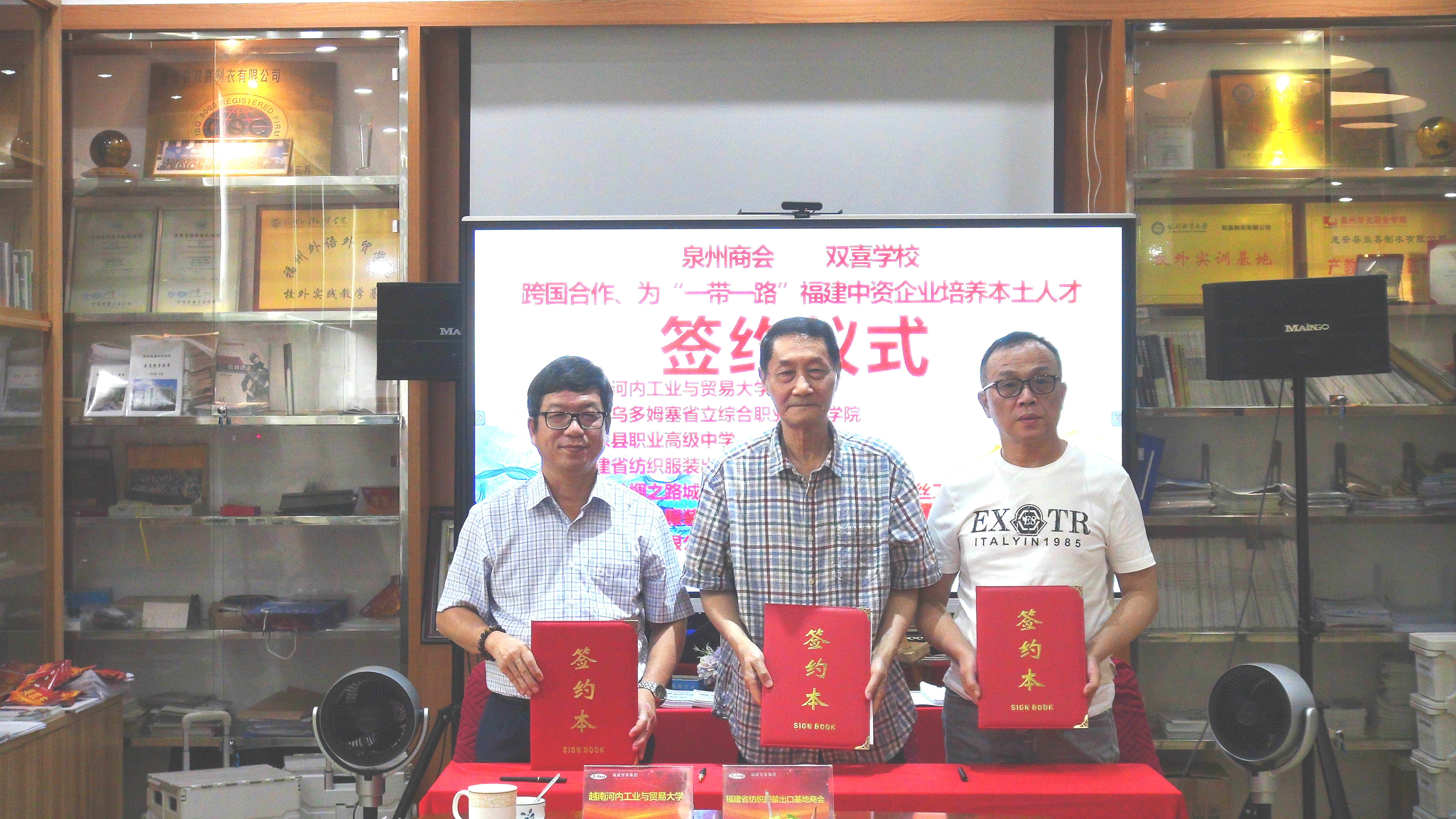 此次访问的重要成果之一,是于8月6日成功举办了多方合作签约仪式。越南河内工业与贸易大学、老挝乌多姆塞省立综合职业技术学院及云南景东高级职业中学,与福建省纺织服装出口基地商会、海陆丝绸之路城市联盟工商理事会、泉州海丝工商联合会、泉州纺织服装商会、bg真人娱乐制衣有限公司、bg真人娱乐等机构,共同签署了合办“bg真人娱乐国际班”、联合培养“一带一路”国际化技术管理人才的合作协议与备忘录。泉州台商投资区教育文体旅游局中教科陈志文科长、泉州海丝工商联合会陈苍松秘书长等领导嘉宾出席了签约仪式并见证了多方合作的开启。