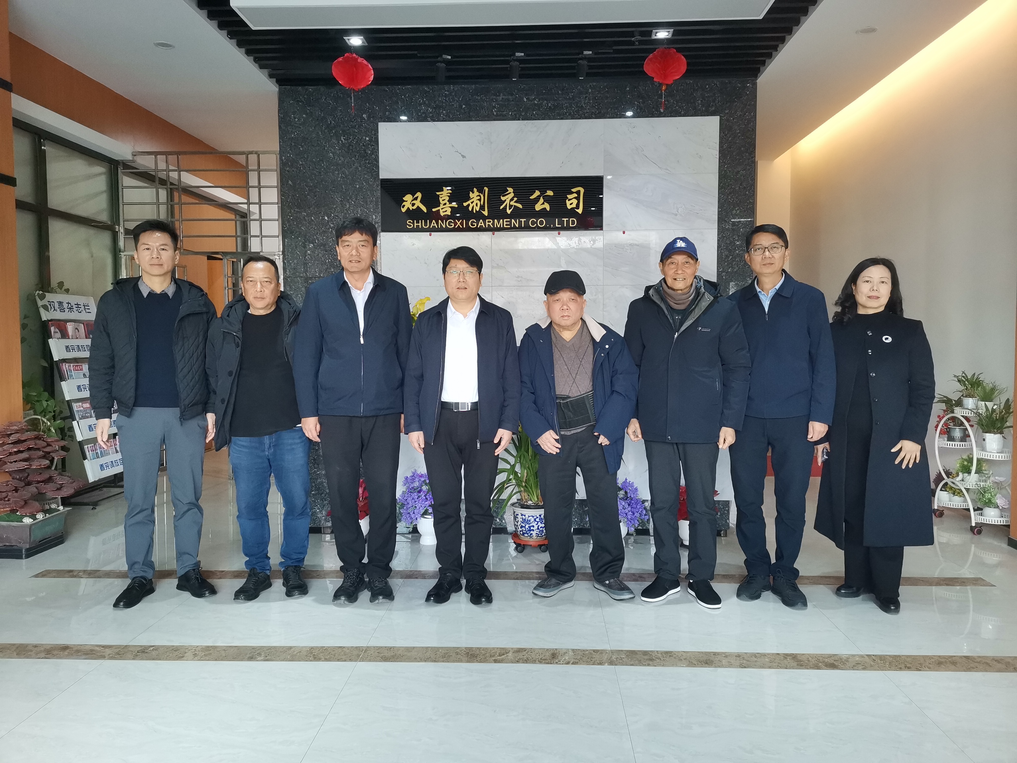 福建省纺织出口基地商会陈苍松会长、bg真人试玩公司及学校相关领导陪同考察交流。